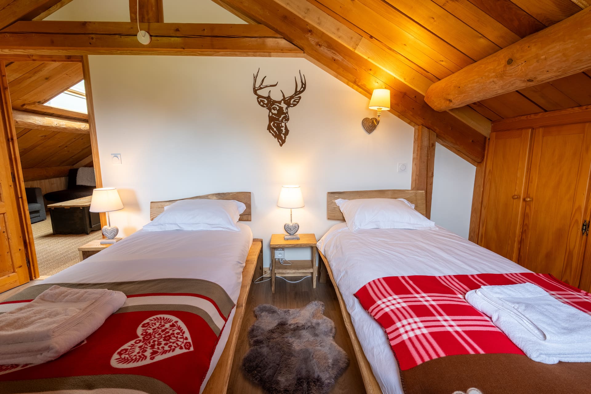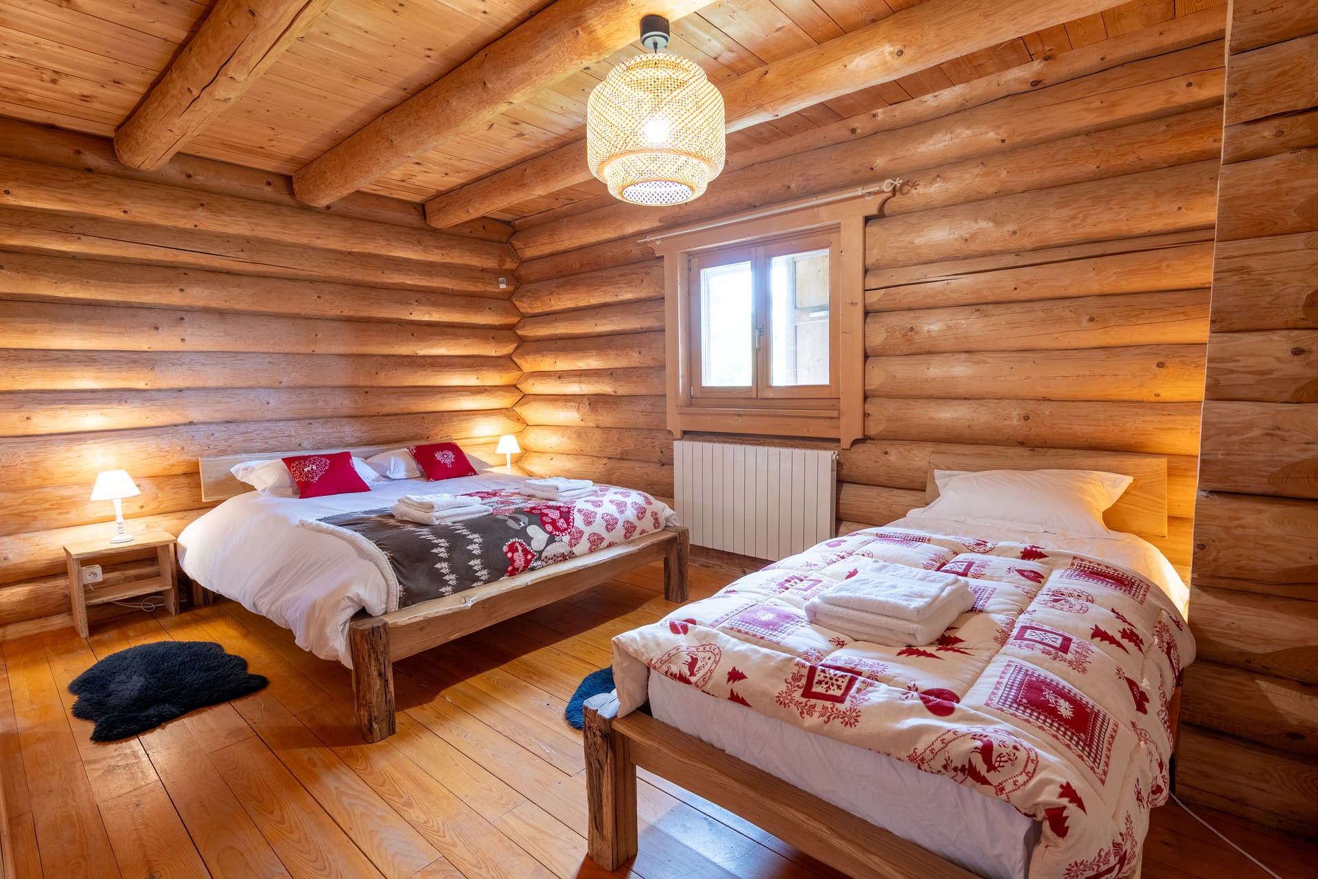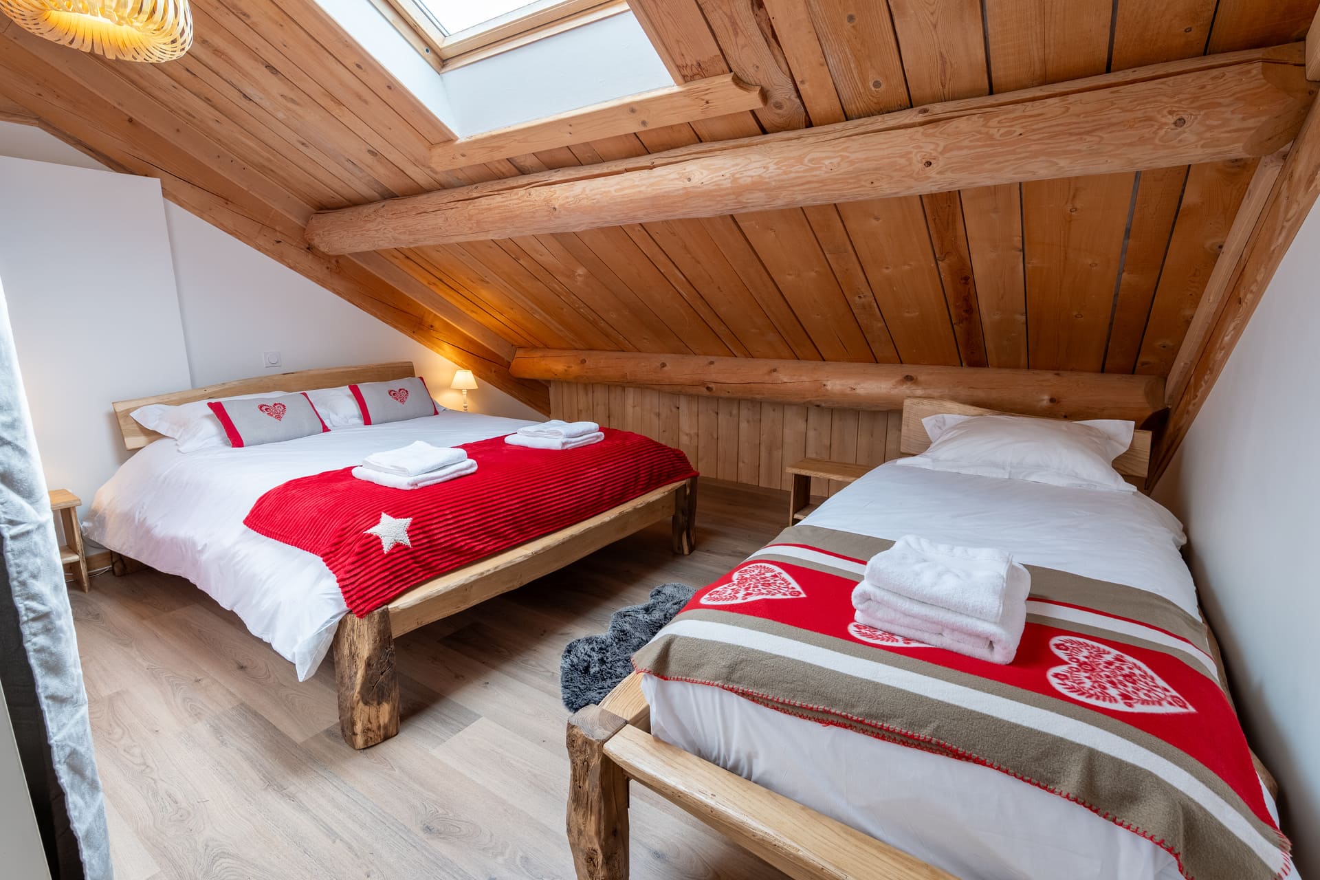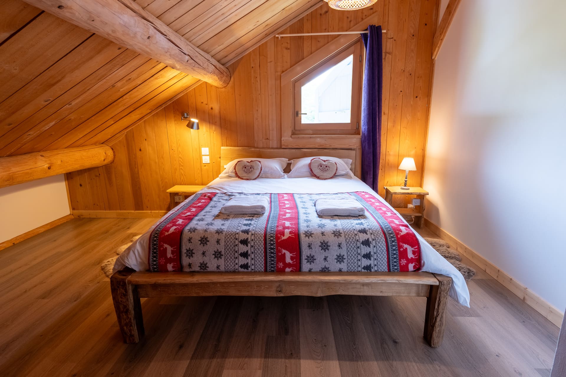 Le chalet propose six chambres lumineuses, décorées dans un style montagnard et chaleureux :
